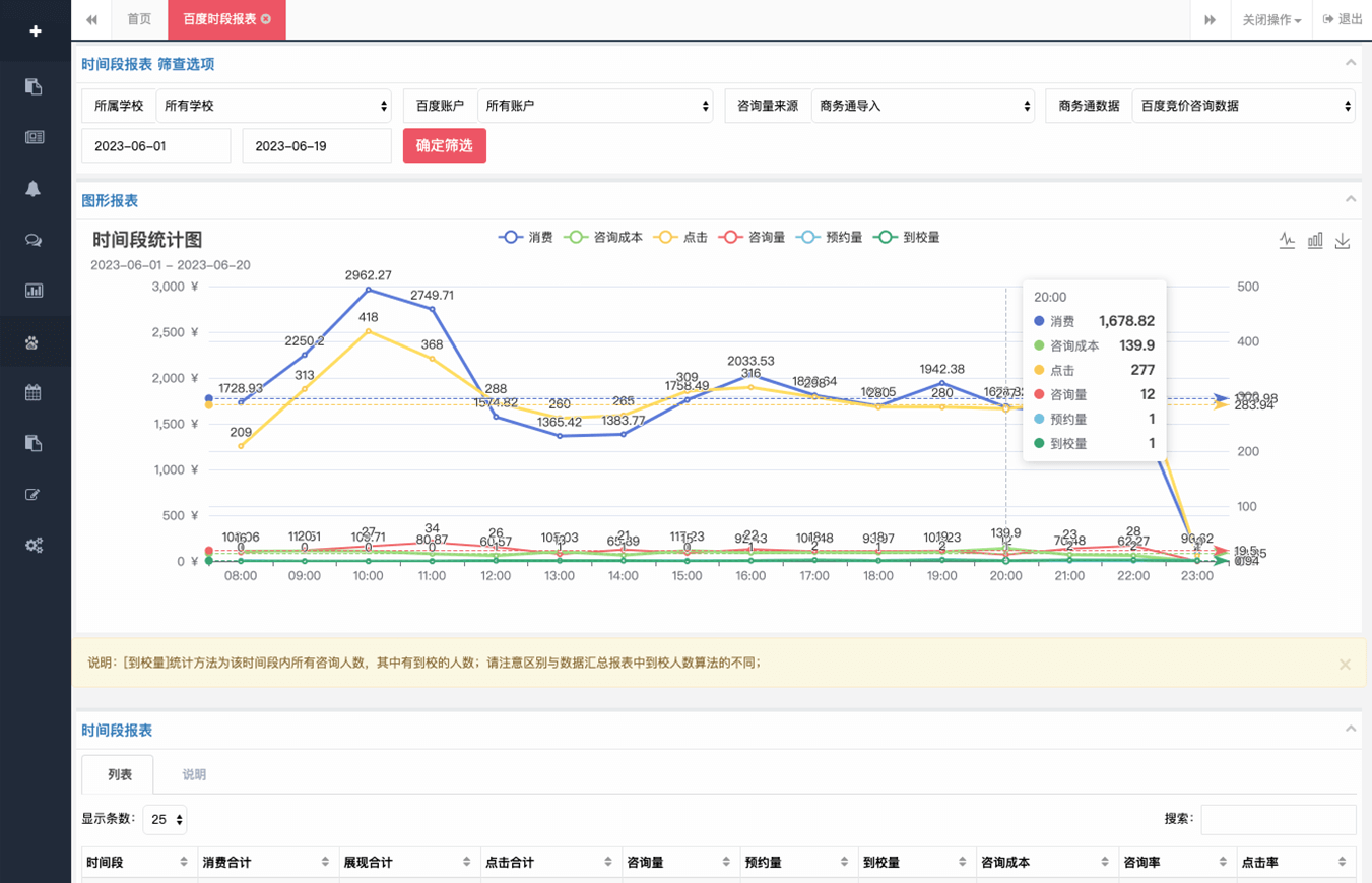 一鍵生成賬戶投放關鍵詞的咨詢、到校成本!